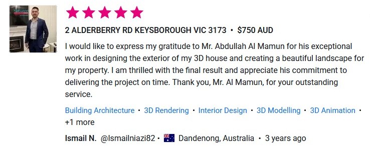 A passionate 3D designer specializing in architectural exterior and interior design. I bring your ideas to life with realistic, high-quality visuals that help you see the future before it’s built. Whether you need a breathtaking exterior for your dream project or a stunning interior that blends style and functionality, I’m here to deliver premium-quality designs. With 12 years of experience, I focus on precision, creativity, and bringing your vision to reality with industry-leading software and techniques. Let’s create something amazing together.
